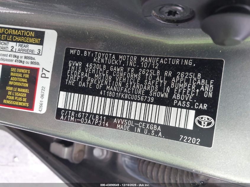 2012 TOYOTA CAMRY HYBRID