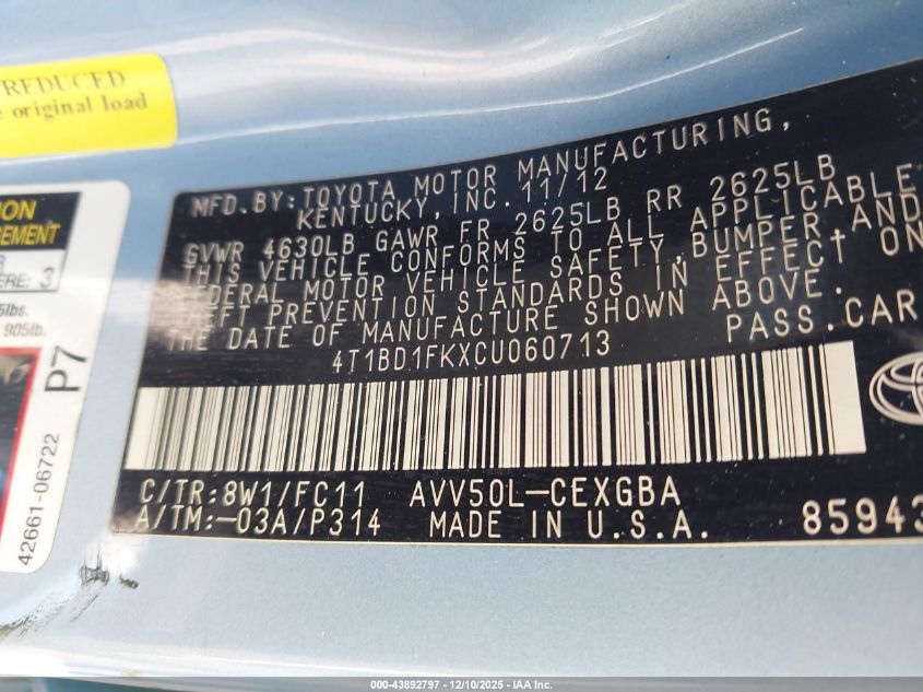 2012 TOYOTA CAMRY HYBRID