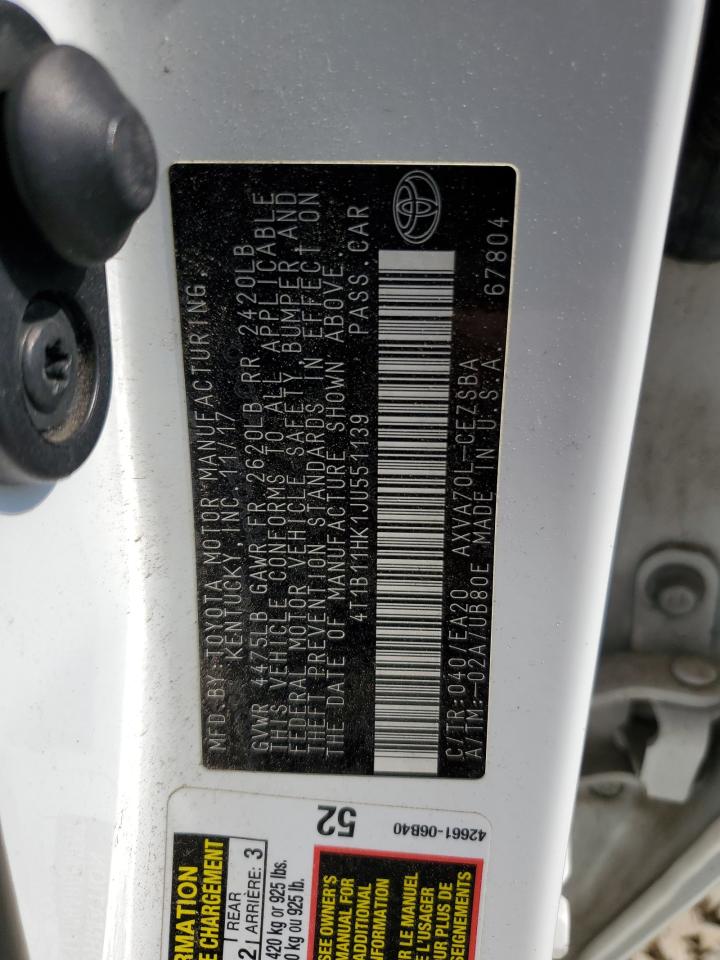 2018 TOYOTA CAMRY - 4T1B11HK1JU551139, цвет - Белый, 2.5, Бензин, из США