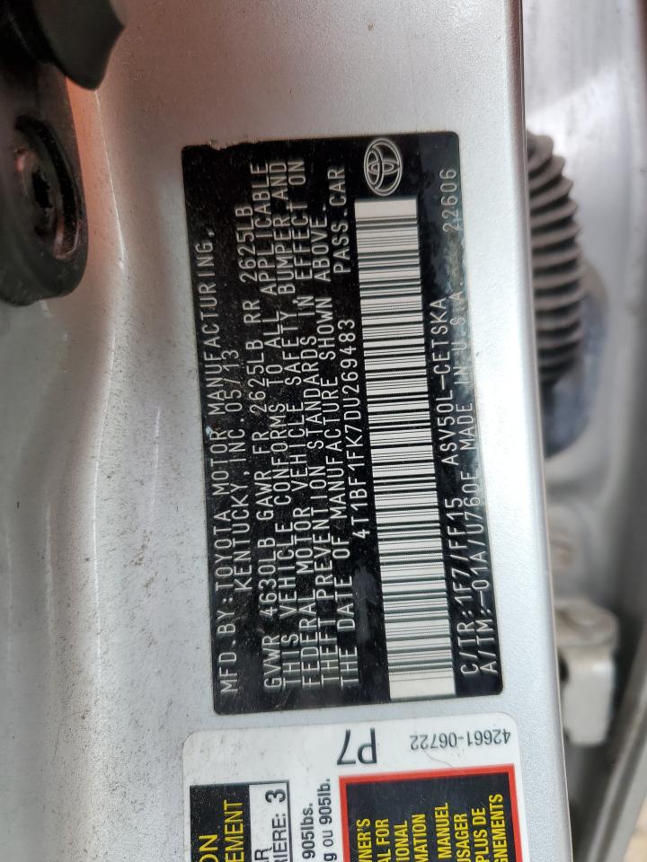 2013 TOYOTA CAMRY - 4T1BF1FK7DU269483, цвет - Серебряный, 2.5, Бензин, из США