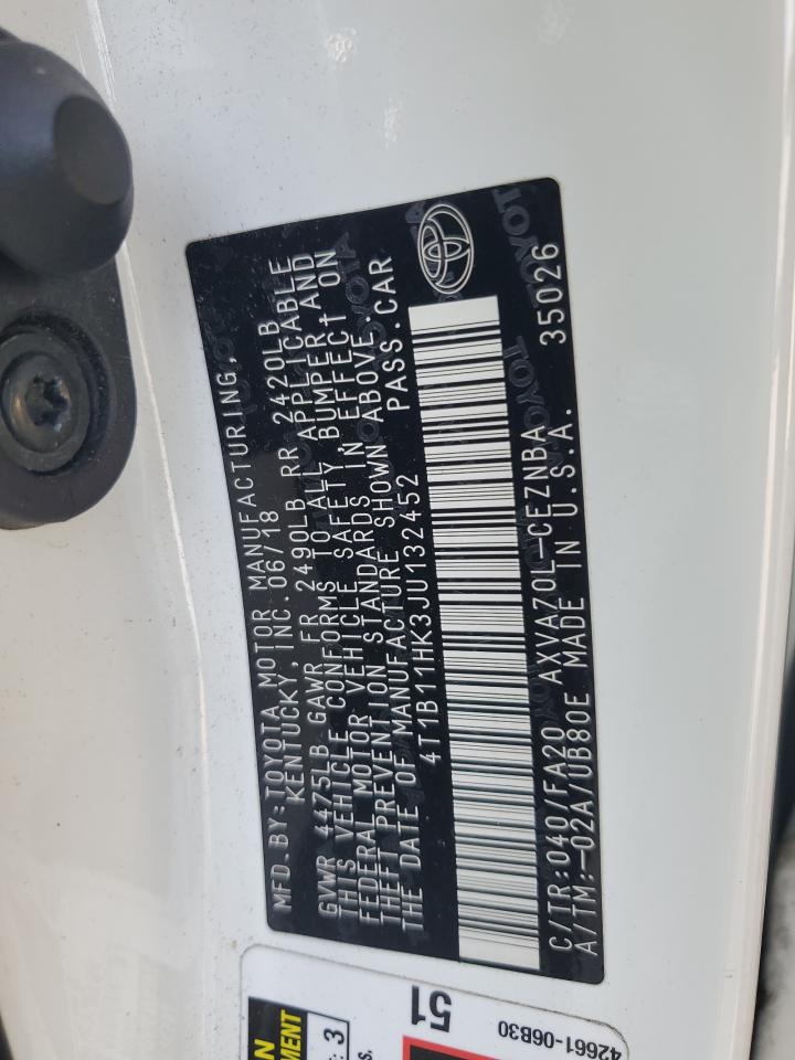 2018 TOYOTA CAMRY - 4T1B11HK3JU132452, цвет - Белый, 2.5, Бензин, из США