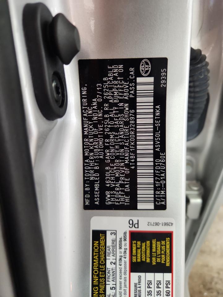 2013 TOYOTA CAMRY - 4T4BF1FK0DR328976, цвет - Серебряный, 2.5, Бензин, из США