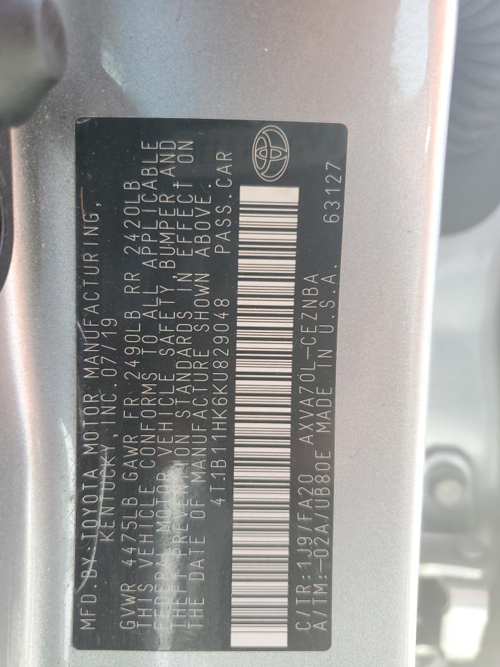 2019 TOYOTA CAMRY - 4T1B11HK6KU829048, цвет - Серебряный, 2.5, Бензин, из США