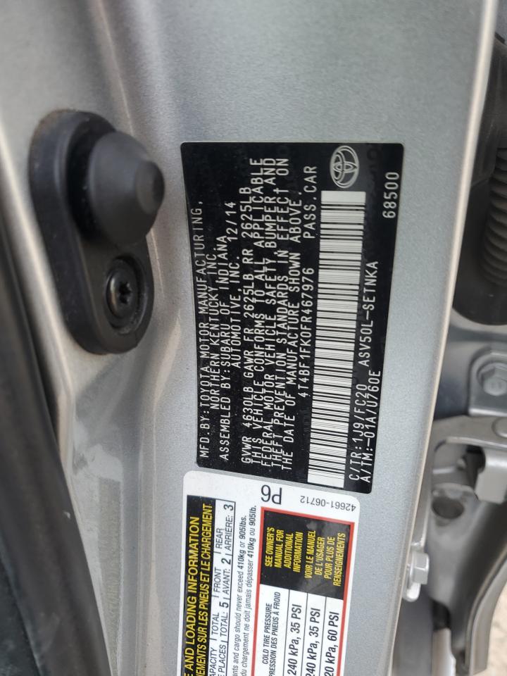 2015 TOYOTA CAMRY - 4T4BF1FK0FR467976, цвет - Серебряный, 2.5, Бензин, из США