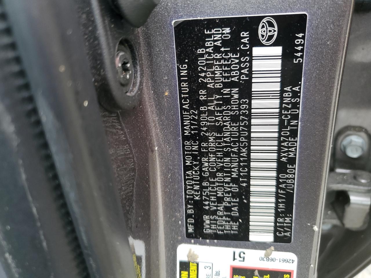 2023 TOYOTA CAMRY - 4T1C11AK5PU757393, цвет - Серый, 2.5, Бензин, из США