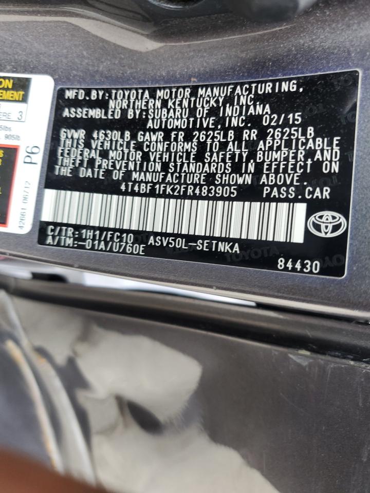 2015 TOYOTA CAMRY - 4T4BF1FK2FR483905, цвет - Древесный уголь, 2.5, Бензин, из США