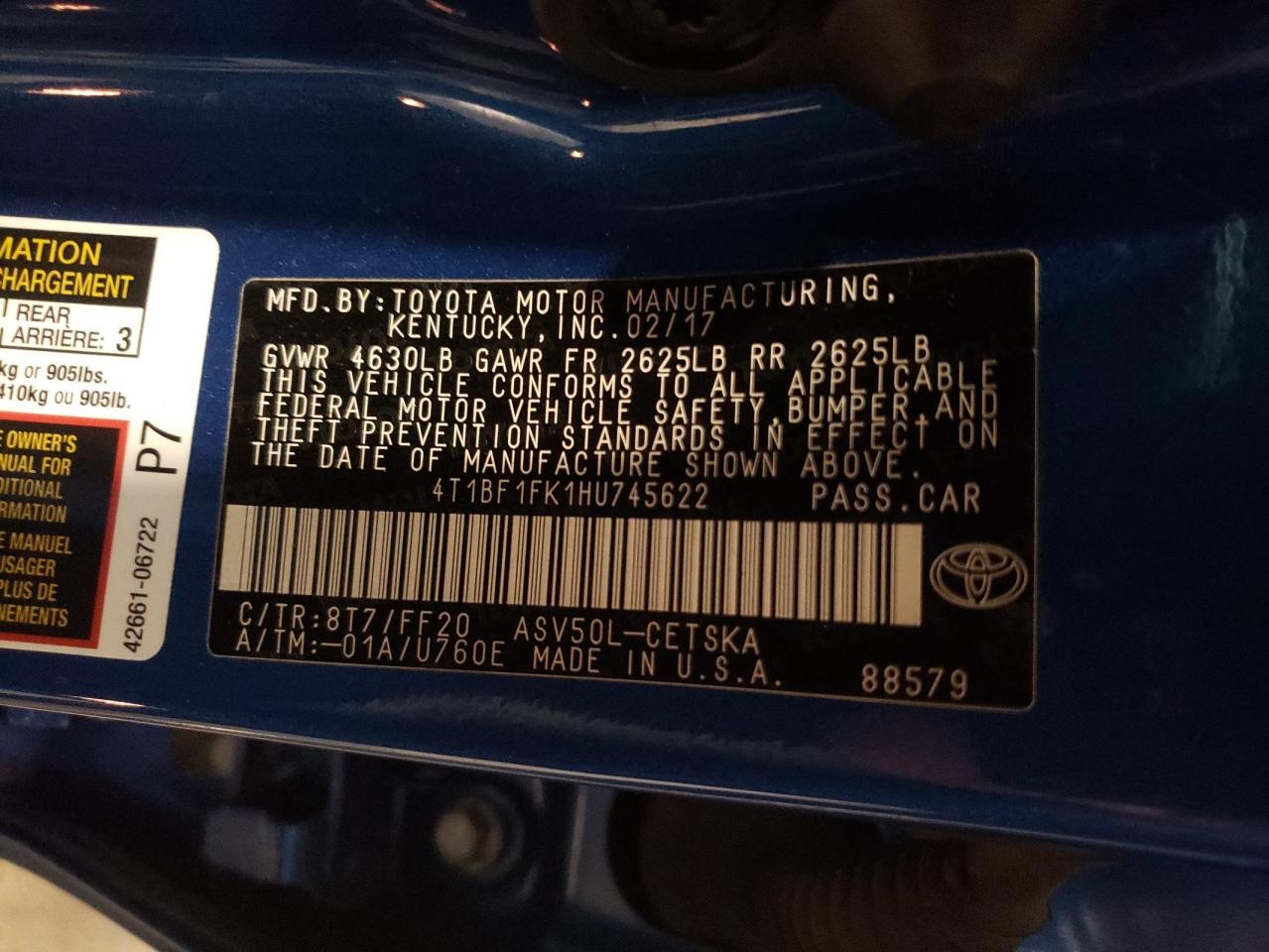 2017 TOYOTA CAMRY - 4T1BF1FK1HU745622, цвет - Синий, 2.5, Бензин, из США