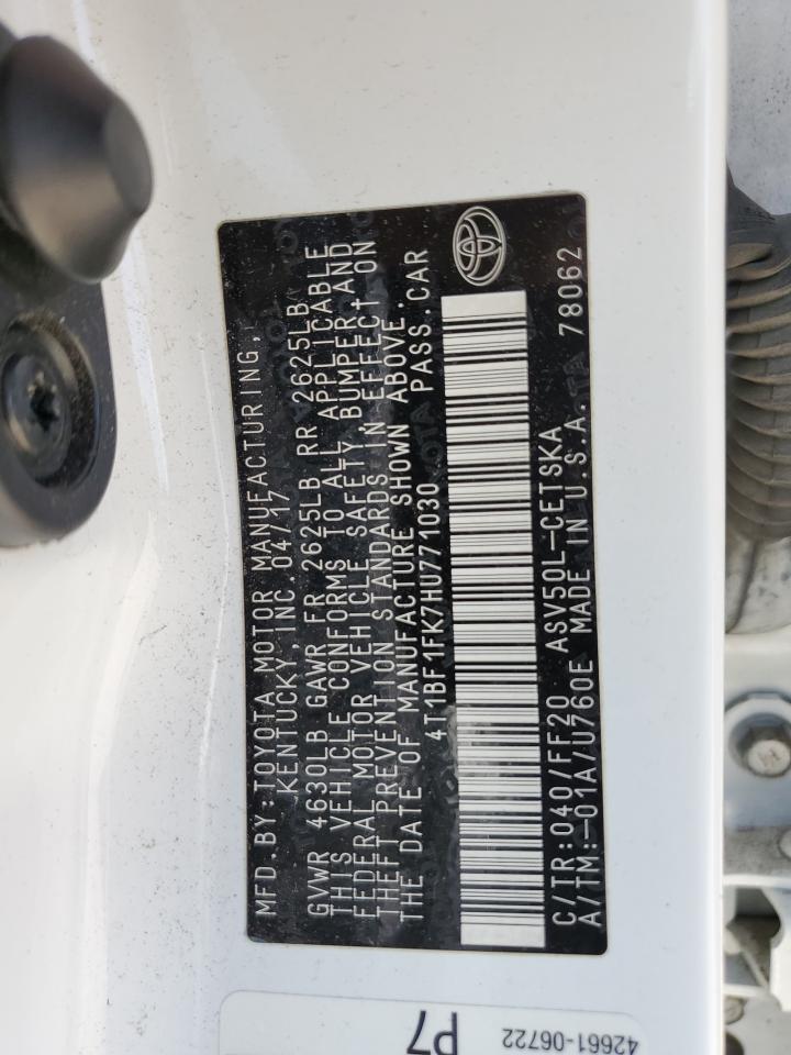 2017 TOYOTA CAMRY - 4T1BF1FK7HU771030, цвет - Белый, 2.5, Бензин, из США