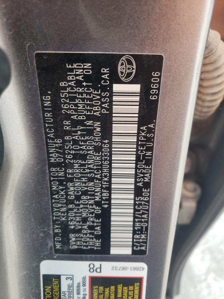 2017 TOYOTA CAMRY - 4T1BF1FK3HU633064, цвет - Серый, 2.5, Бензин, из США