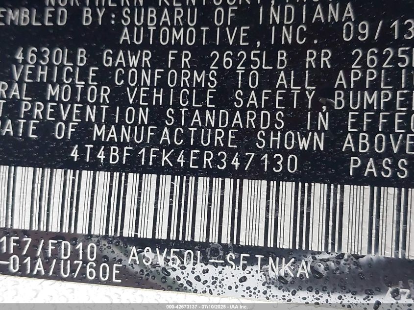 2014 TOYOTA CAMRY - 4T4BF1FK4ER347130, цвет - Серебряный, 2.5, Бензин, Передний привод из США