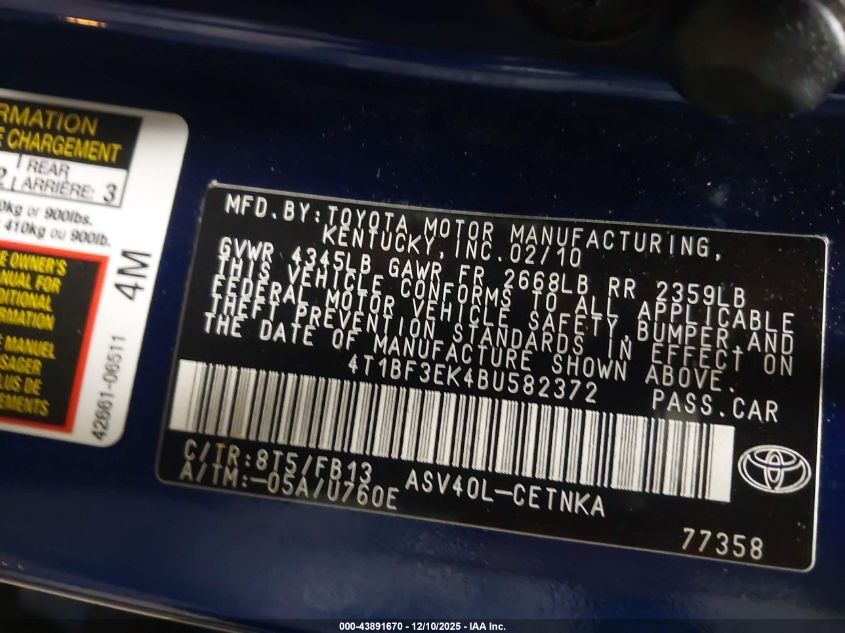 2011 TOYOTA CAMRY BASE