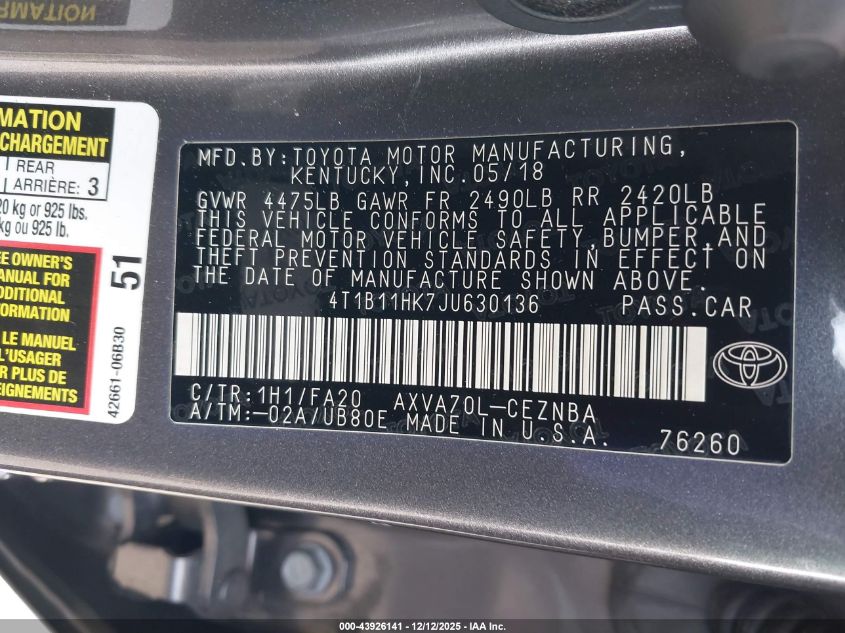 2018 TOYOTA CAMRY L
