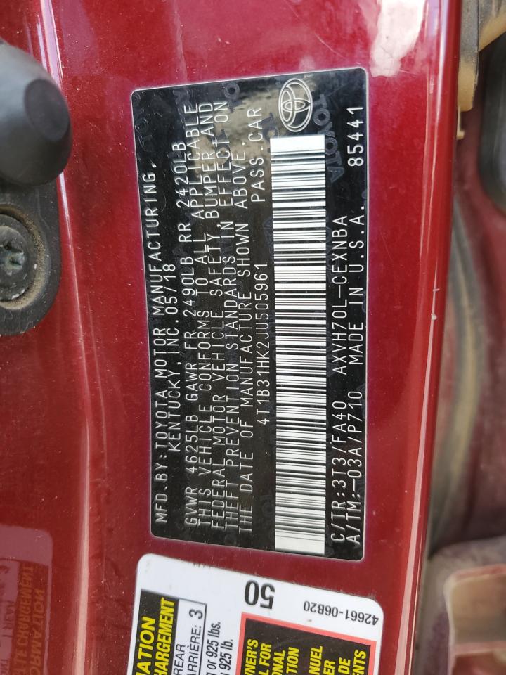 2018 TOYOTA CAMRY - 4T1B31HK2JU505961, цвет - Красный, 2.5, Гибрид, из США