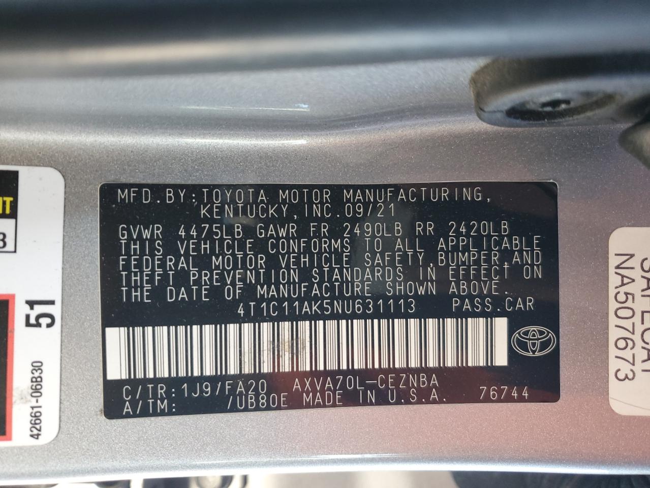 2022 TOYOTA CAMRY - 4T1C11AK5NU631113, цвет - Серебряный, 2.5, Бензин, из США