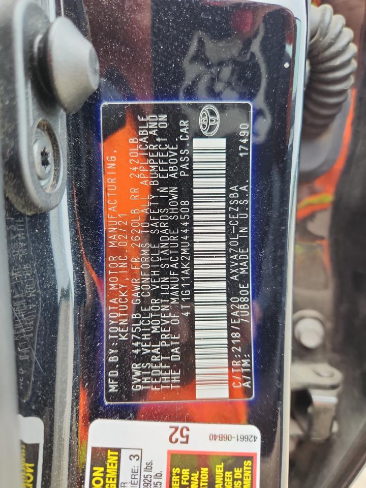2021 TOYOTA CAMRY - 4T1G11AK2MU444508, цвет - Черный, 2.5, Бензин, из США