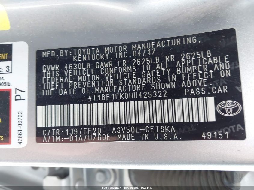 2017 TOYOTA CAMRY LE