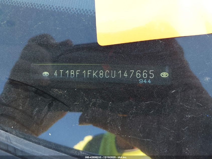 2012 TOYOTA CAMRY - 4T1BF1FK8CU147665, цвет - Белый, 2.5, Бензин, Передний привод из США