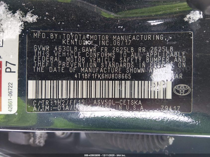 2017 TOYOTA CAMRY - 4T1BF1FK6HU808665, цвет - Синий, 2.5, Бензин, Передний привод из США