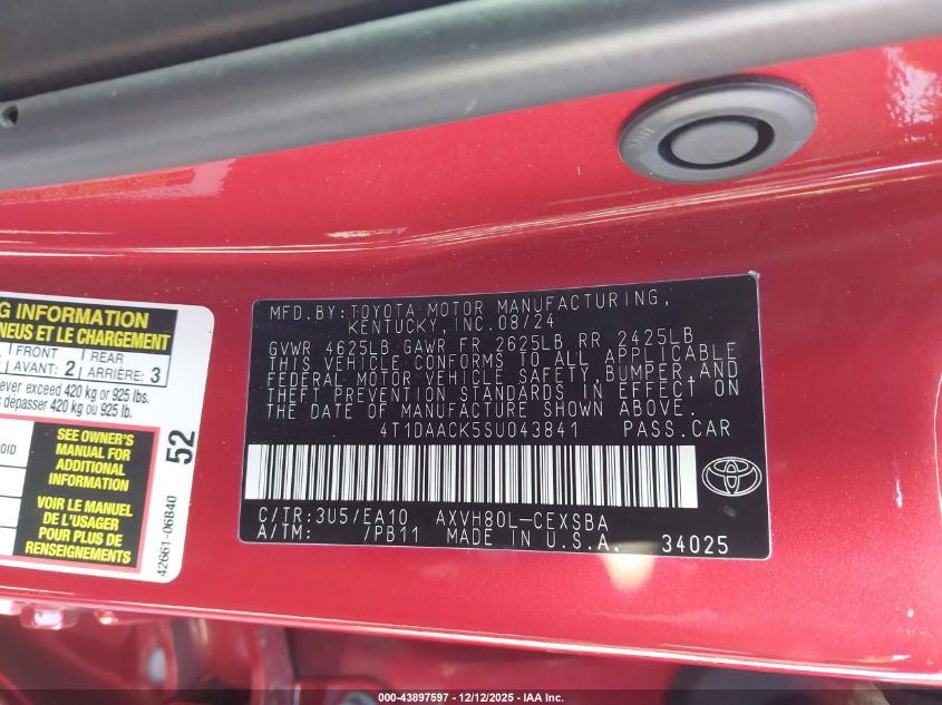 2025 TOYOTA CAMRY - 4T1DAACK5SU043841, цвет - Красный, 2.5, Гибрид, Передний привод из США