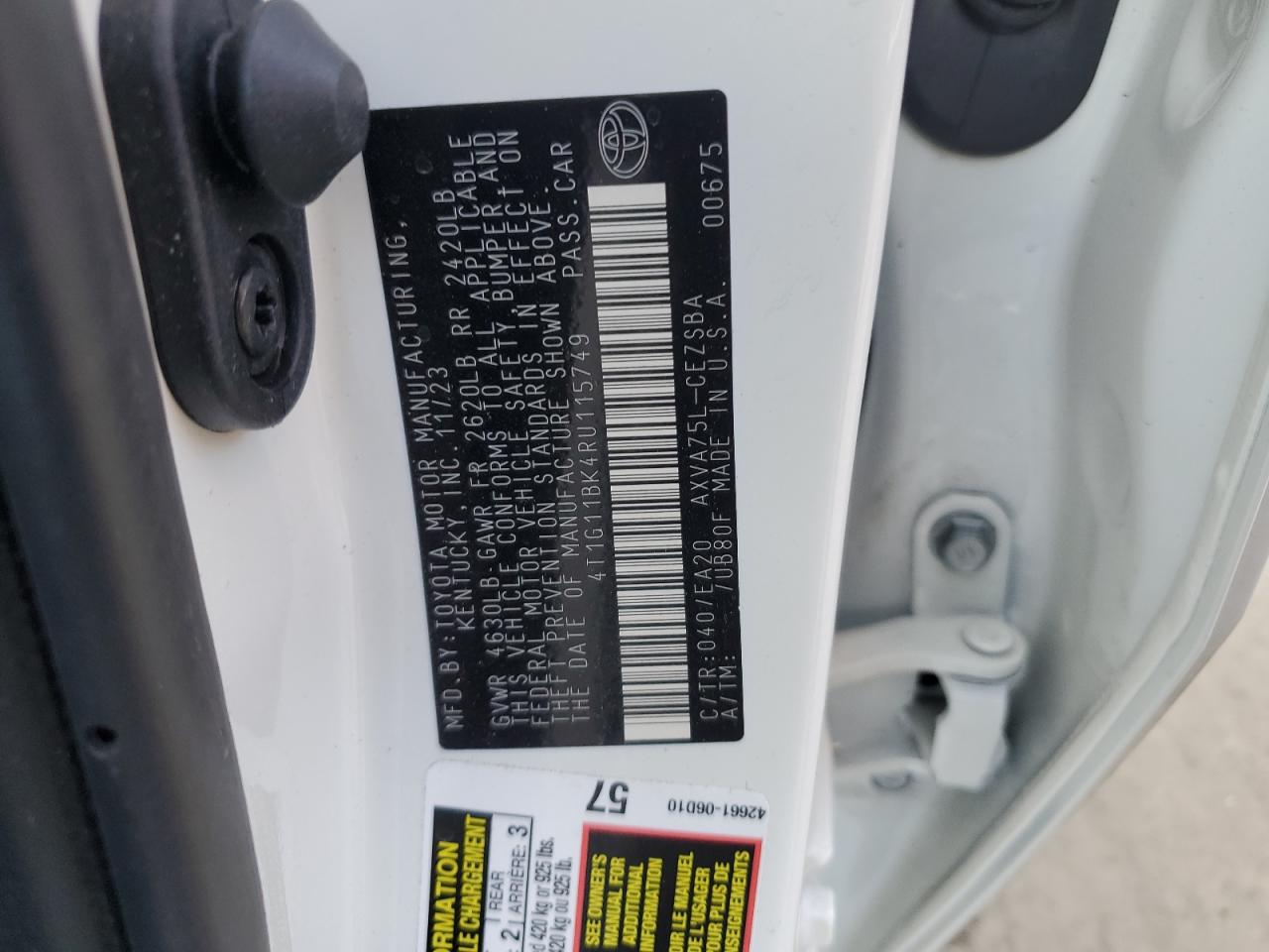 2024 TOYOTA CAMRY - 4T1G11BK4RU115749, цвет - Белый, 2.5, Бензин, Полный привод из США