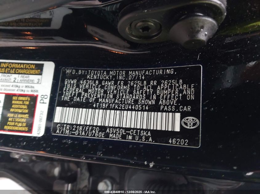 2014 TOYOTA CAMRY - 4T1BF1FK2EU440514, цвет - Черный, 2.5, Бензин, Передний привод из США