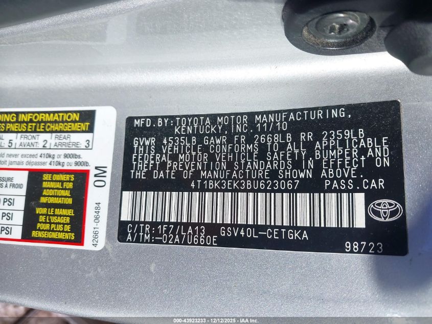 2011 TOYOTA CAMRY - 4T1BK3EK3BU623067, цвет - Серебряный, 3.5, Бензин, Передний привод из США