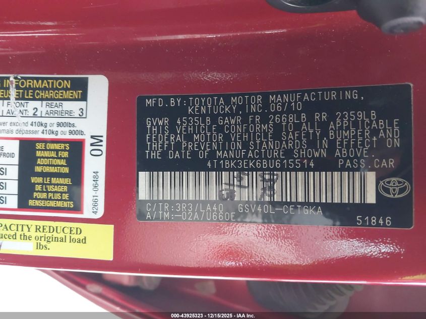 2011 TOYOTA CAMRY BASE