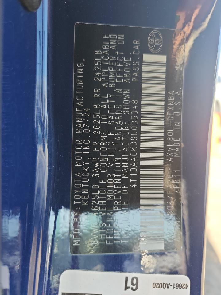 2025 TOYOTA CAMRY - 4T1DAACK3SU035348, цвет - Синий, 2.5, Гибрид, из США