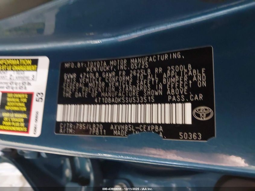 2025 TOYOTA CAMRY - 4T1DBADK5SU533515, цвет - Синий, 2.5, Гибрид, Полный привод из США