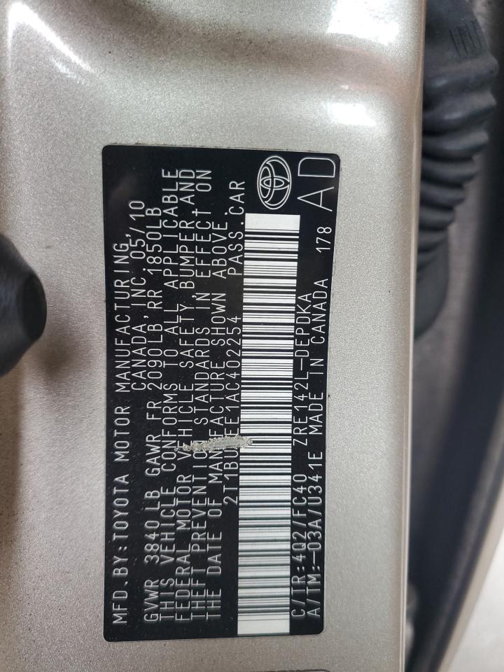 2010 TOYOTA COROLLA - 2T1BU4EE1AC402254, цвет - Бежевый, 1.8, Бензин, из США
