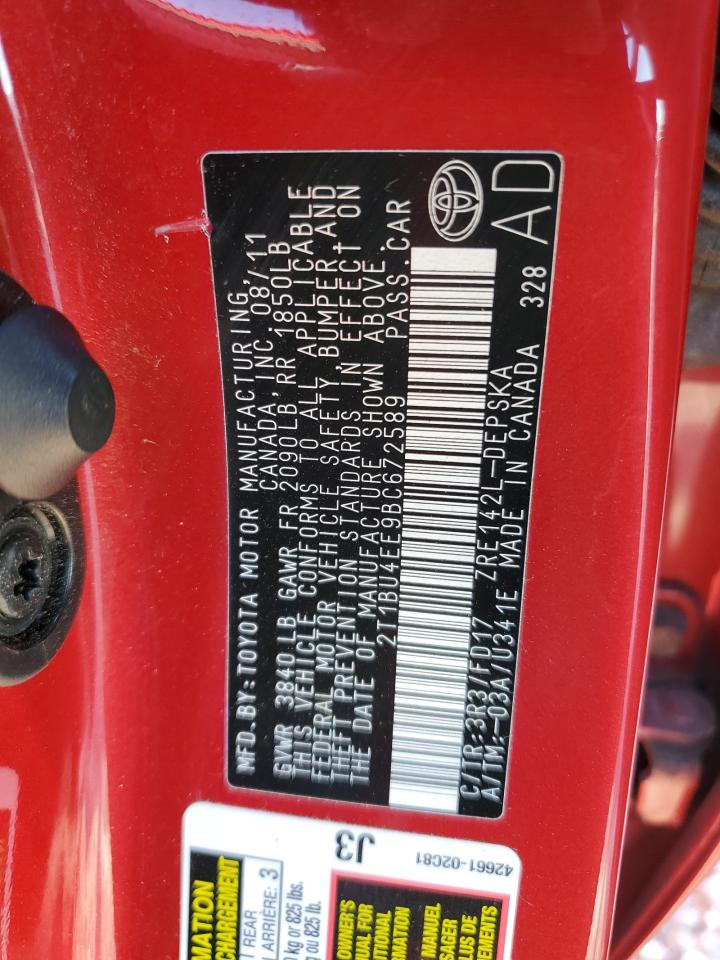 2011 TOYOTA COROLLA - 2T1BU4EE9BC672589, цвет - Красный, 1.8, Бензин, из США