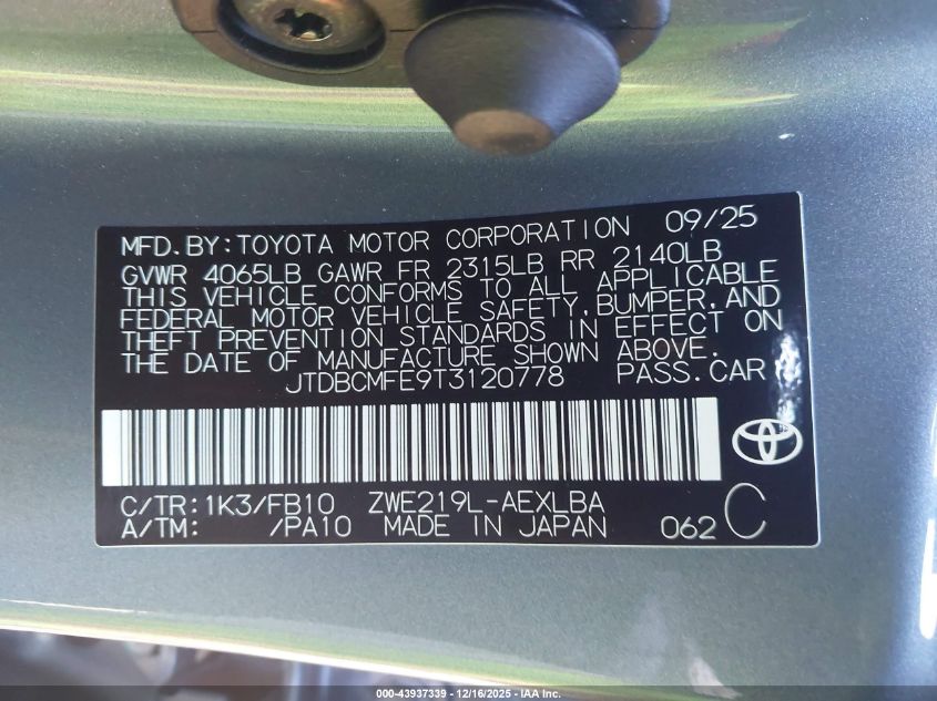 2026 TOYOTA COROLLA - JTDBCMFE9T3120778, цвет - Синий, 1.8, Гибрид, Передний привод из США