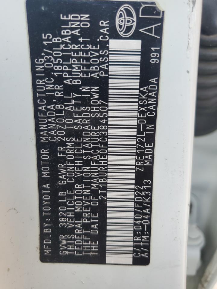 2015 TOYOTA COROLLA - 2T1BURHE0FC384507, цвет - Белый, 1.8, Бензин, из США