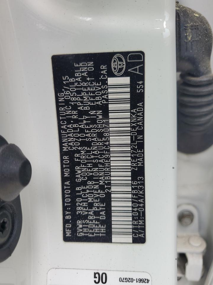 2015 TOYOTA COROLLA - 2T1BURHE9FC458071, цвет - Белый, 1.8, Бензин, из США