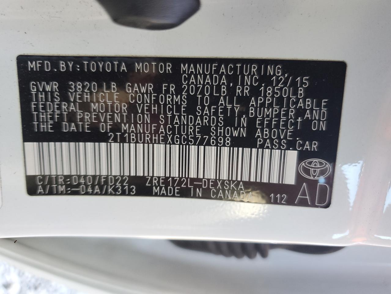 2016 TOYOTA COROLLA - 2T1BURHEXGC577698, цвет - Белый, 1.8, Бензин, из США