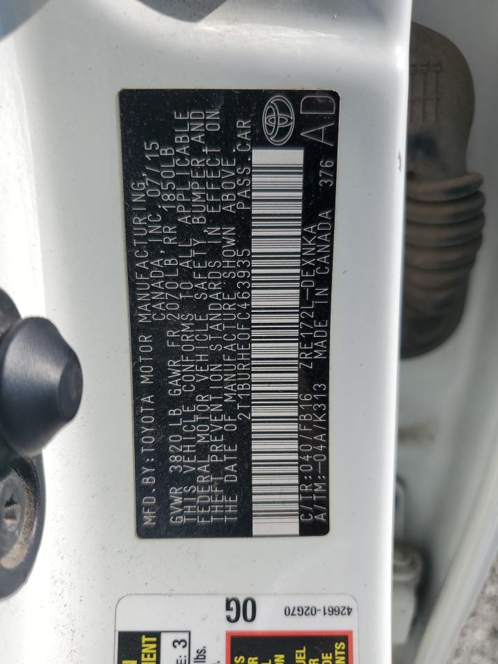 2015 TOYOTA COROLLA - 2T1BURHE0FC463935, цвет - Белый, 1.8, Бензин, из США