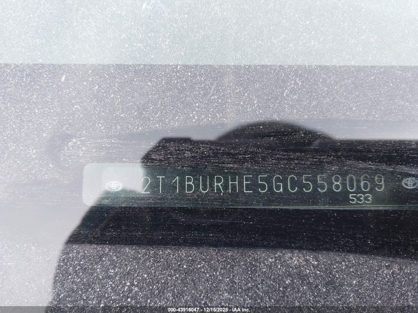 2016 TOYOTA COROLLA - 2T1BURHE5GC558069, цвет - Белый, 1.8, Бензин, Передний привод из США