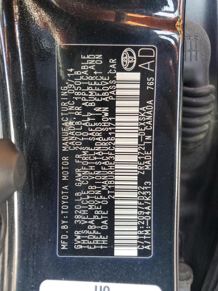 2015 TOYOTA COROLLA - 2T1BURHE3FC261171, цвет - Черный, 1.8, Бензин, из США