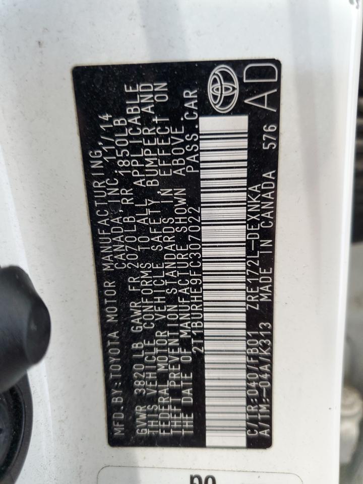 2015 TOYOTA COROLLA - 2T1BURHE9FC307022, цвет - Белый, 1.8, Бензин, из США