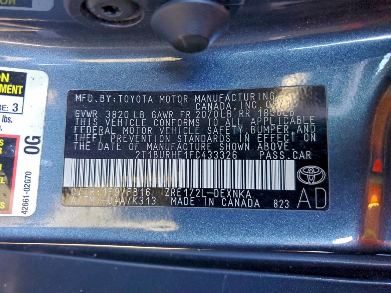 2015 TOYOTA COROLLA - 2T1BURHE1FC433326, цвет - Древесный уголь, 1.8, Бензин, из США