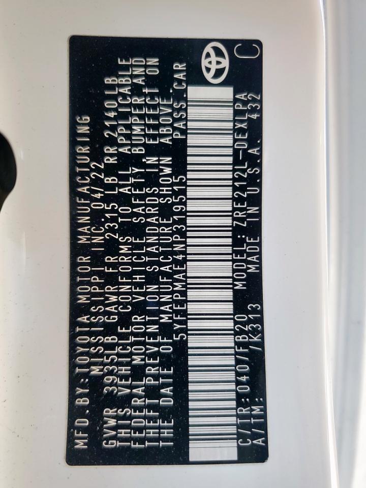2022 TOYOTA COROLLA - 5YFEPMAE4NP319515, цвет - Белый, 1.8, Бензин, из США
