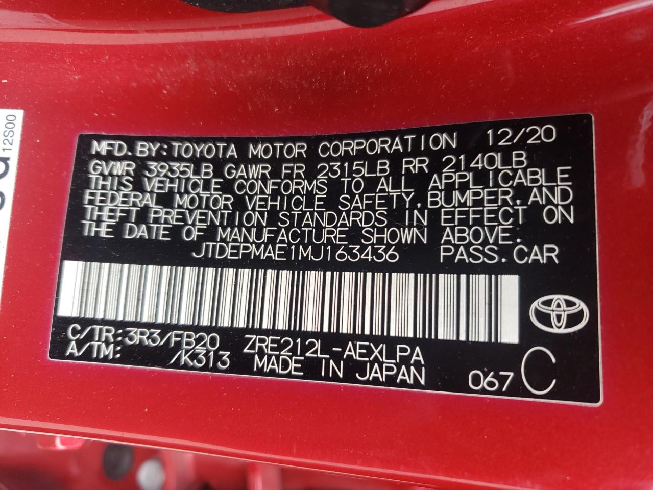2021 TOYOTA COROLLA - JTDEPMAE1MJ163436, цвет - Красный, 1.8, Бензин, из США