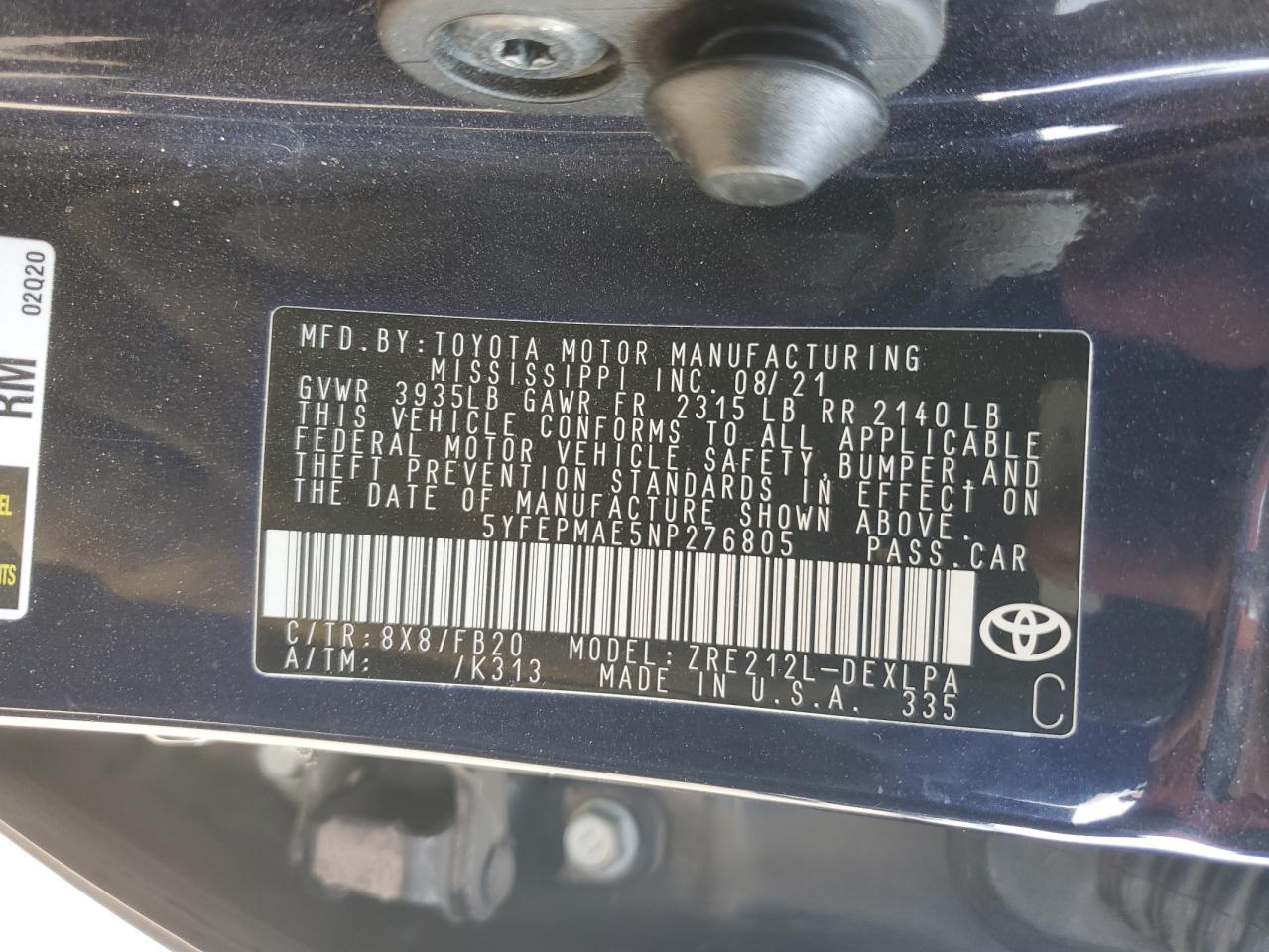 2022 TOYOTA COROLLA - 5YFEPMAE5NP276805, цвет - Синий, 1.8, Бензин, из США