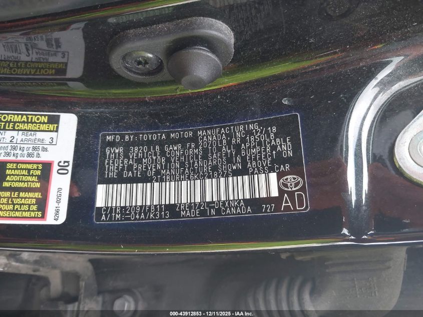 2019 TOYOTA COROLLA L