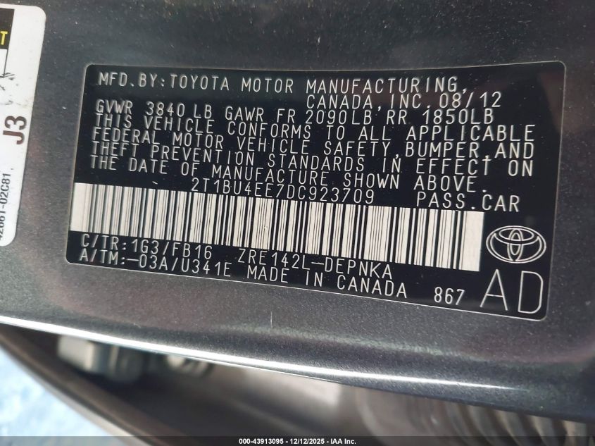 2013 TOYOTA COROLLA BASE