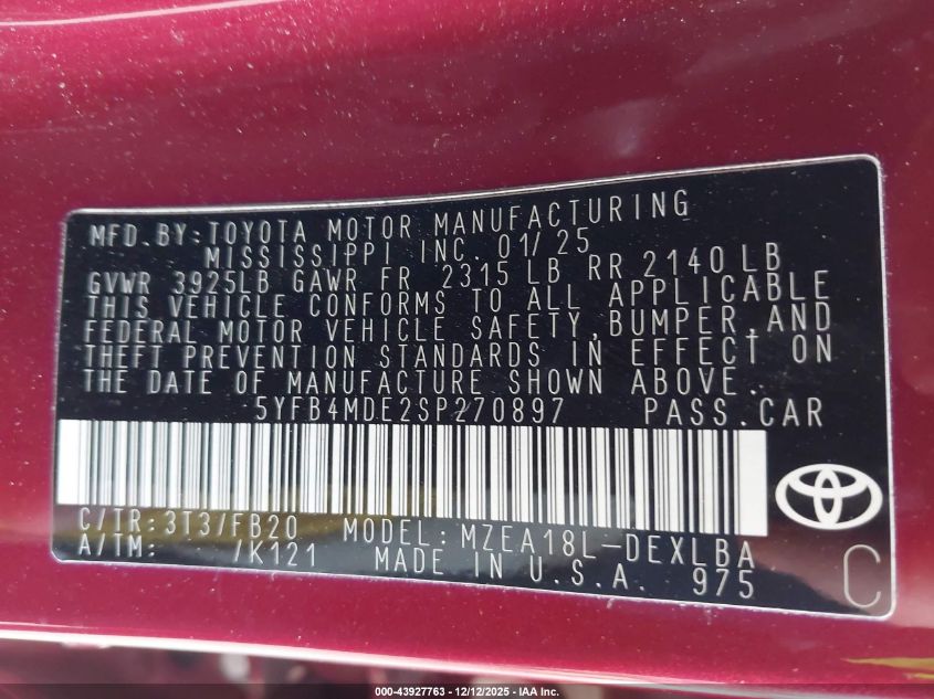 2025 TOYOTA COROLLA - 5YFB4MDE2SP270897, цвет - Красный, 2.0, Бензин, Передний привод из США