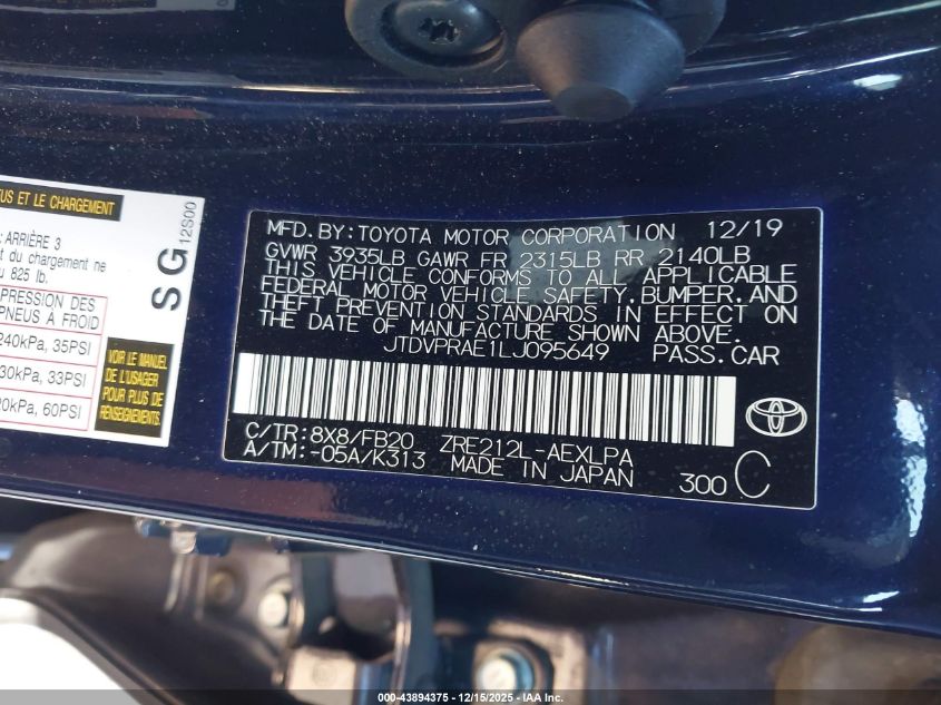 2020 TOYOTA COROLLA L