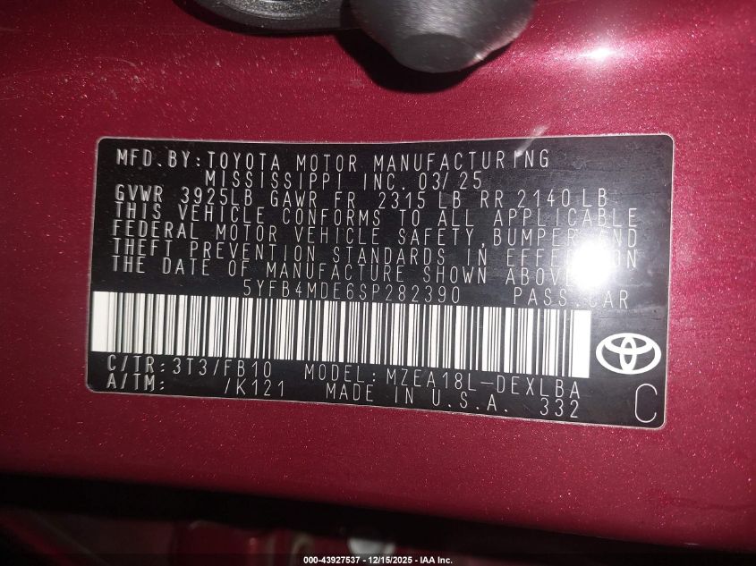 2025 TOYOTA COROLLA - 5YFB4MDE6SP282390, цвет - Красный, 2.0, Бензин, Передний привод из США