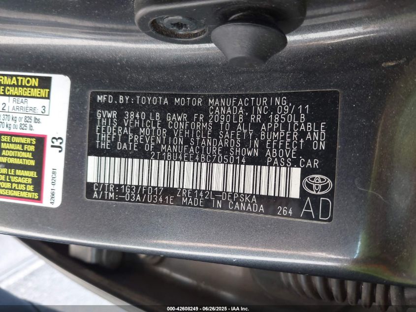 2011 TOYOTA COROLLA - 2T1BU4EE4BC705014, цвет - Серый, 1.8, Бензин, Передний привод из США