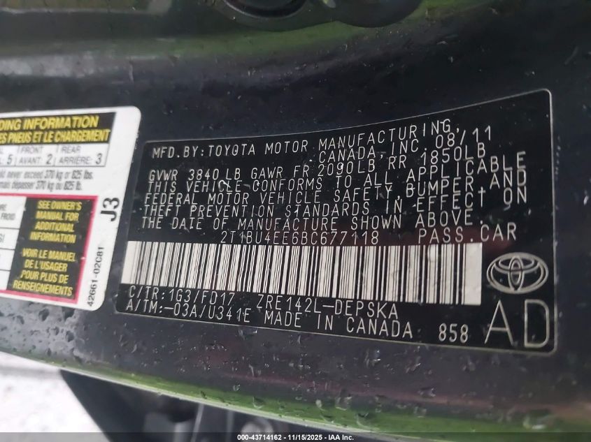 Цвет ЧерныйЦилиндры 4Привод Передний приводVIN 2T1BU4EE6BC677118Состояние СтационарноПовреждения Обычный износДата аукциона 2025-12-18
